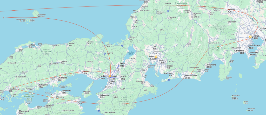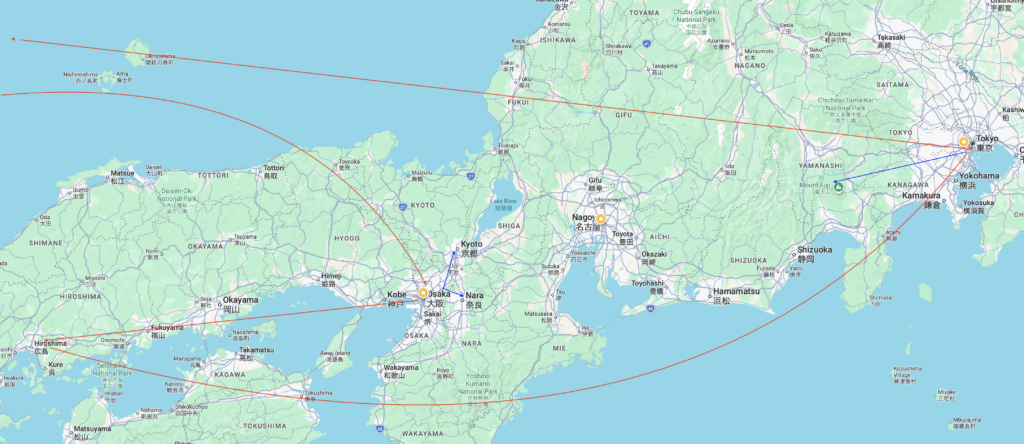 TOKYO(2stay)~SHIZUOKA(1stay)~HIROSIMA(1stay)~OSAKA(3stay) FOR 8 DAYS